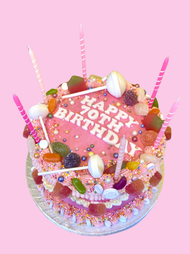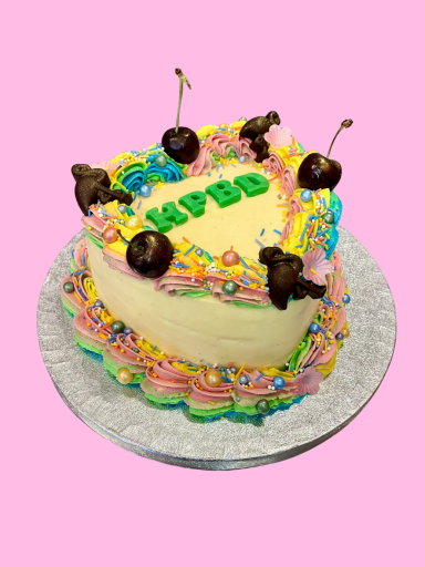 Our classic style cake is when you would like a simple but still a fun design. Decorated with frosting swirls, sprinkles and a card topper, and candles can be added.