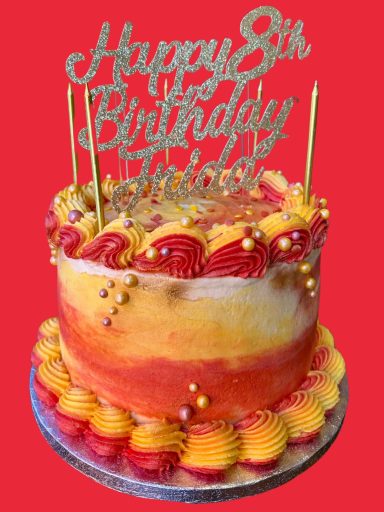 We can use the flavour of the cake for decoration style, or we customise with colour and toppers. Fill in the cake order form to tell us your idea.