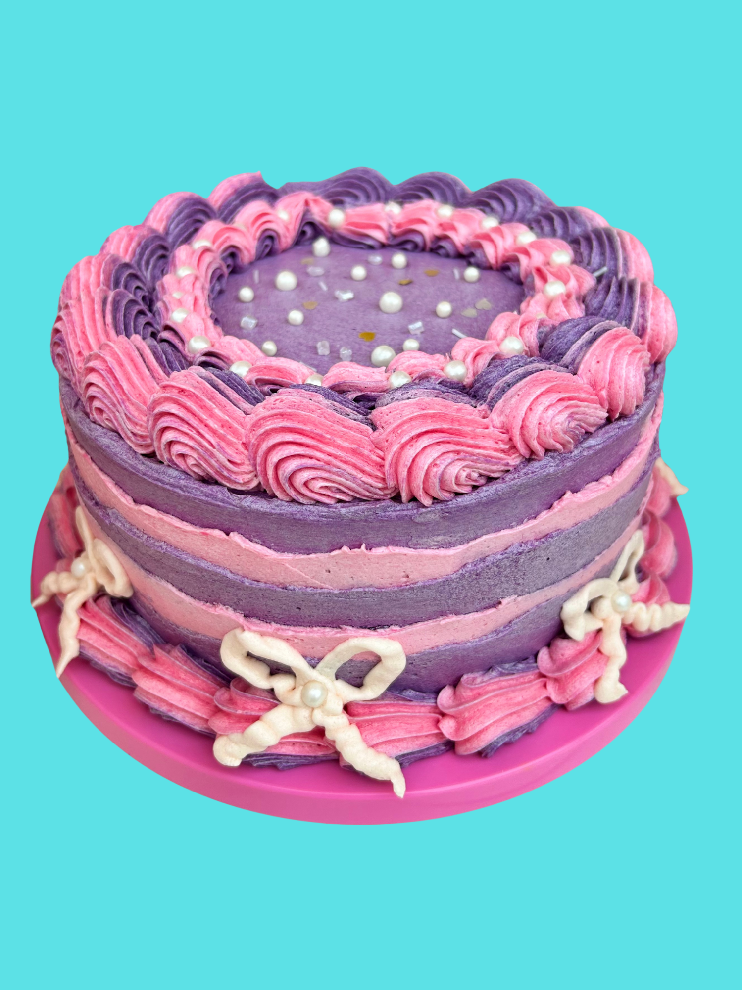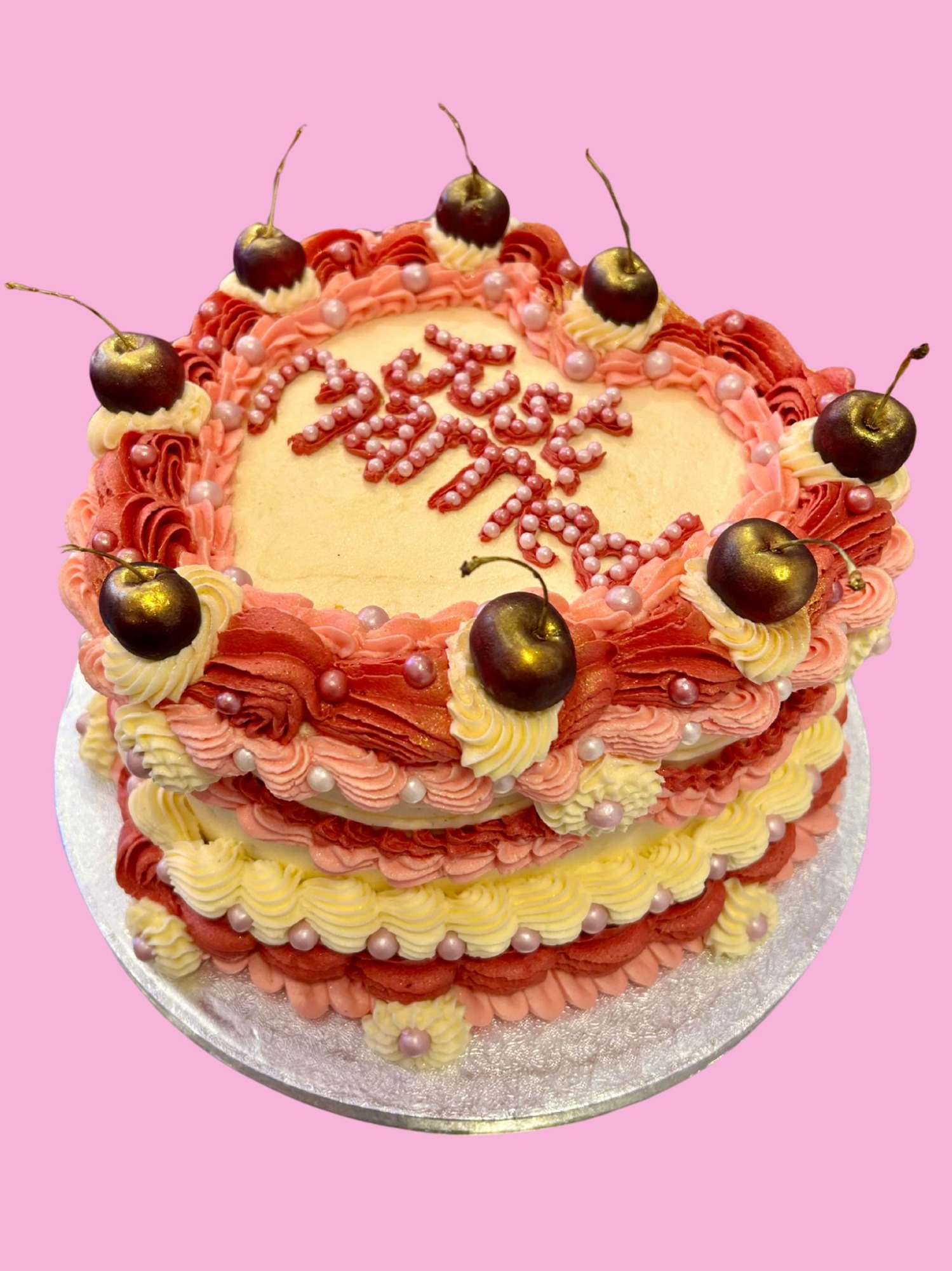 Our retro style is fast becoming our most popular cake style! Vintage style piping around the cakes, with different styles of piping to create a kitsch, romantic and fun design.